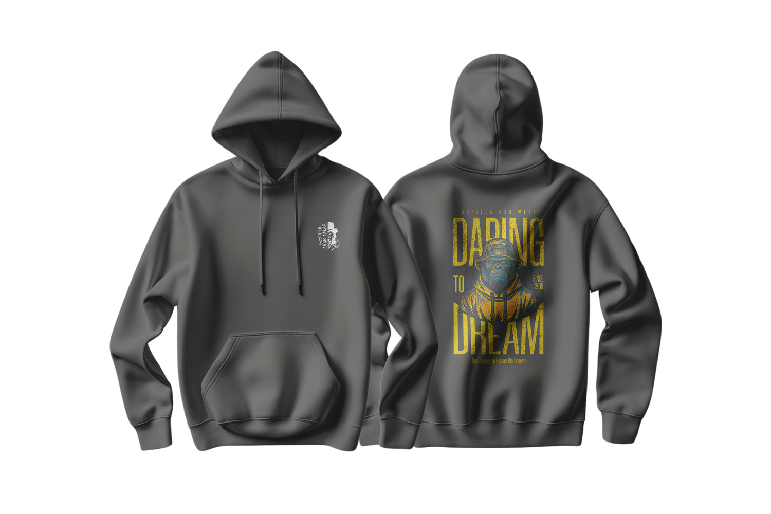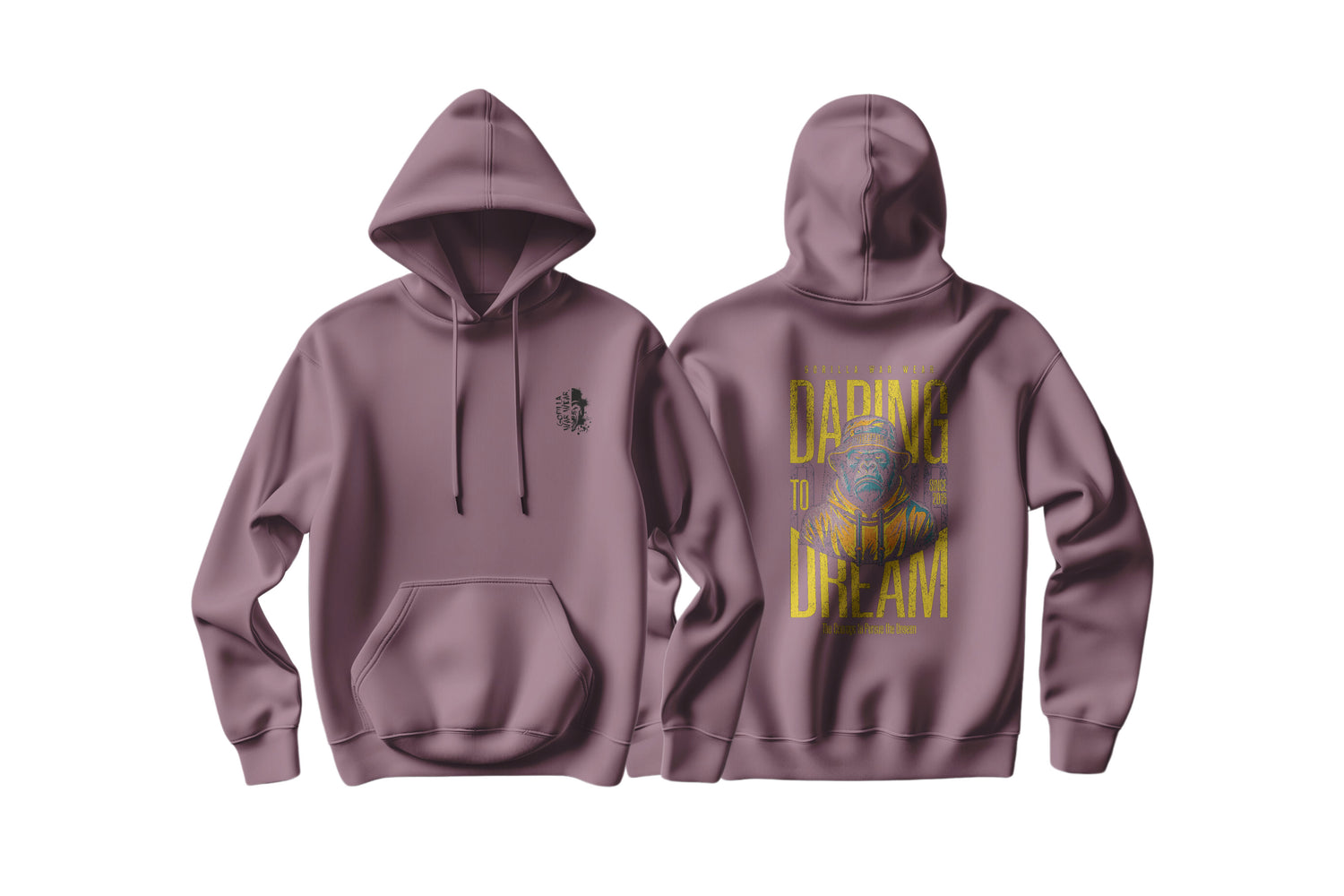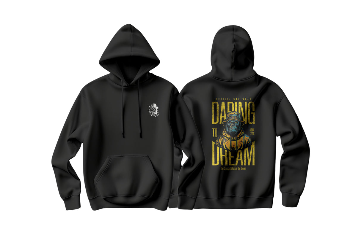 Pursue your dreams with our “Daring to Dream” Gorilla-Inspired Hoodie. Featuring a bold design inspired by the indomitable spirit of gorillas, this hoodie is perfect for those who dare to chase their wildest ambitions. Shop now and embark on your journey with confidence!