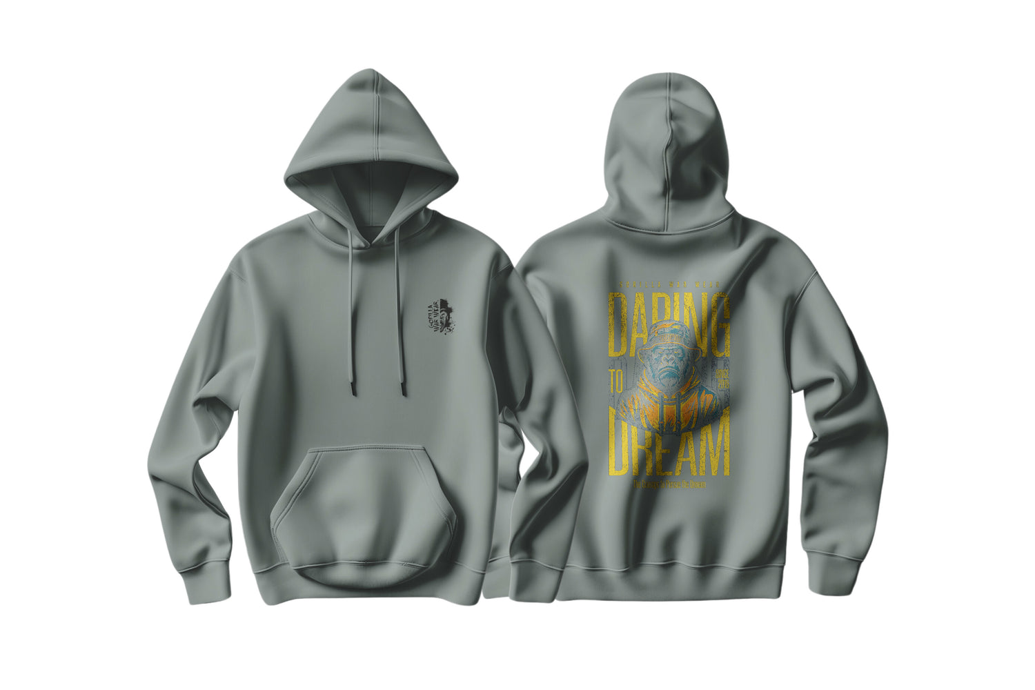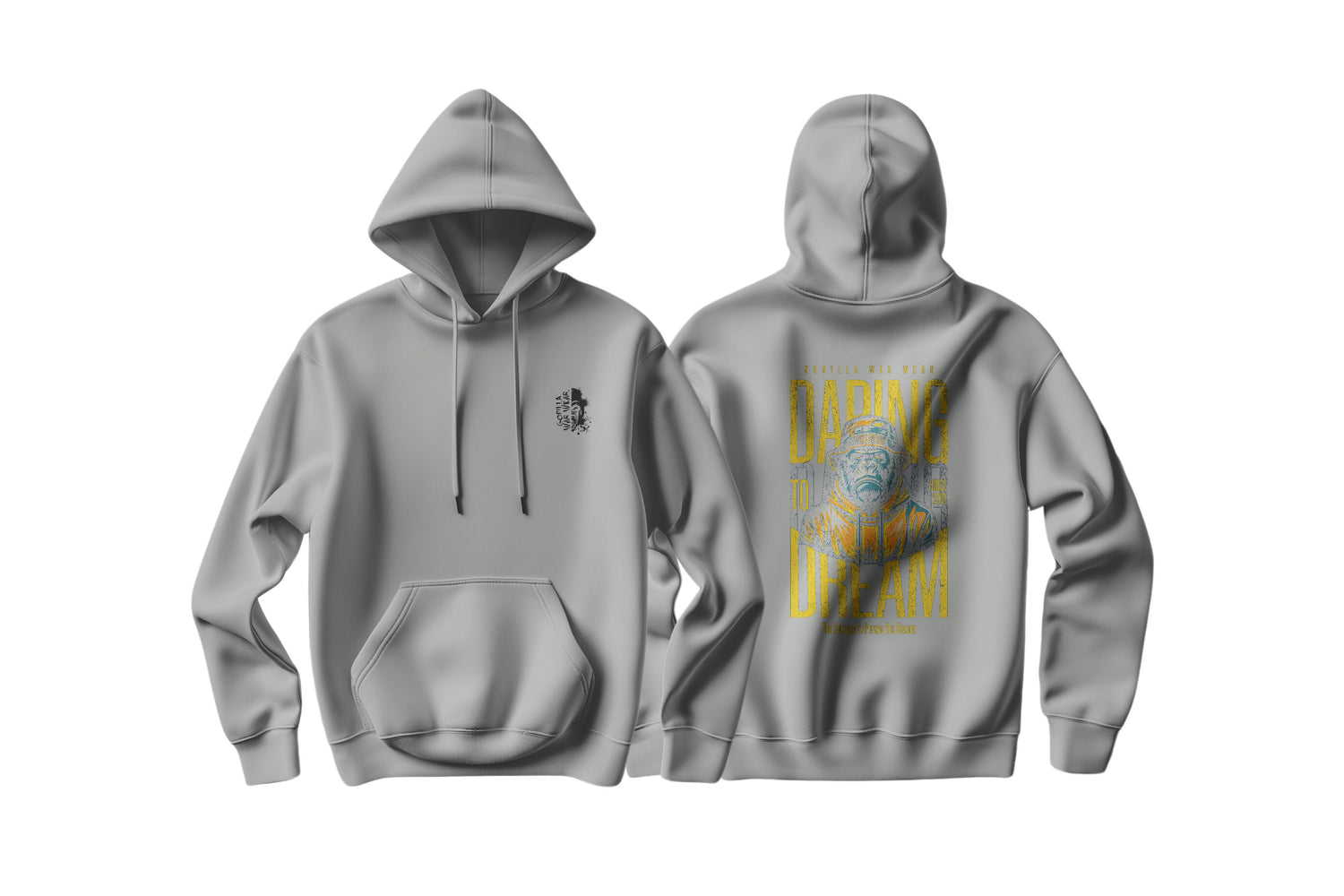 Pursue your dreams with our “Daring to Dream” Gorilla-Inspired Hoodie. Featuring a bold design inspired by the indomitable spirit of gorillas, this hoodie is perfect for those who dare to chase their wildest ambitions. Shop now and embark on your journey with confidence!