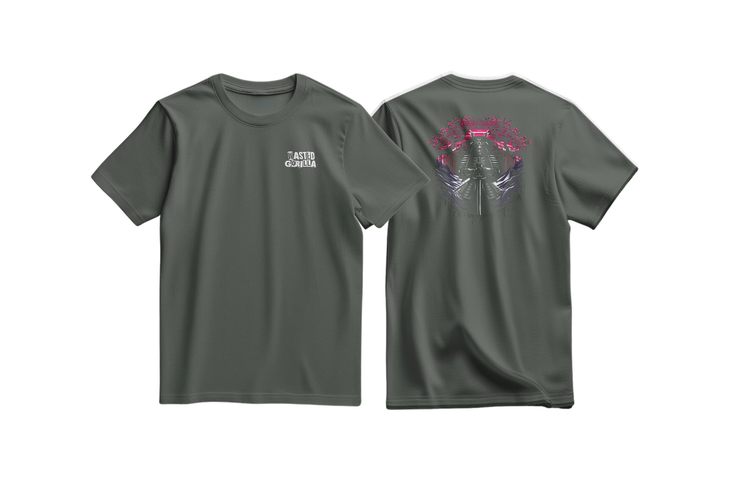 Step into the mystery of the warrior’s path with the Veilwalker T-Shirt. Featuring a stoic samurai framed by blooming cherry blossoms, cascading mountains, and a glowing red sky, this design symbolizes resilience and unwavering spirit. Made with soft, durable fabric, this tee delivers both style and comfort for any occasion.