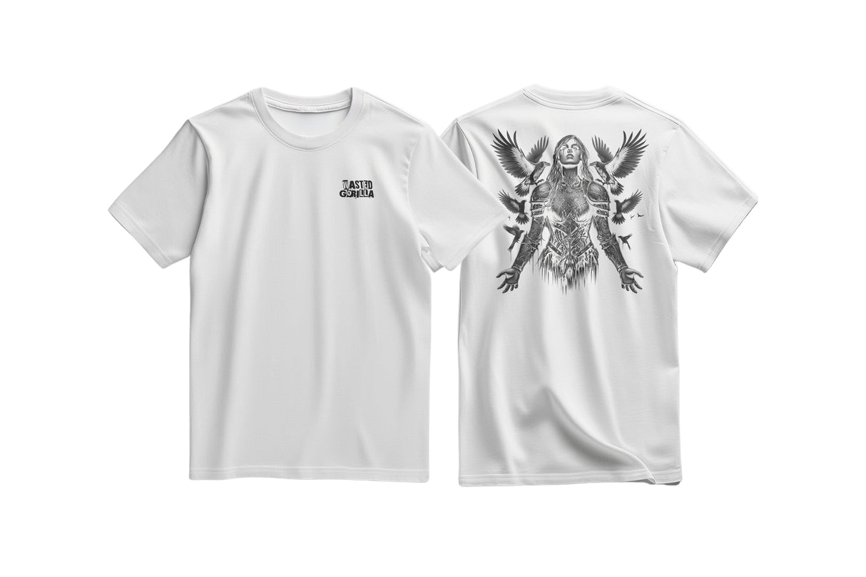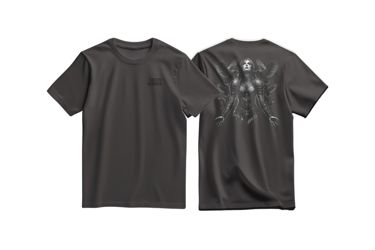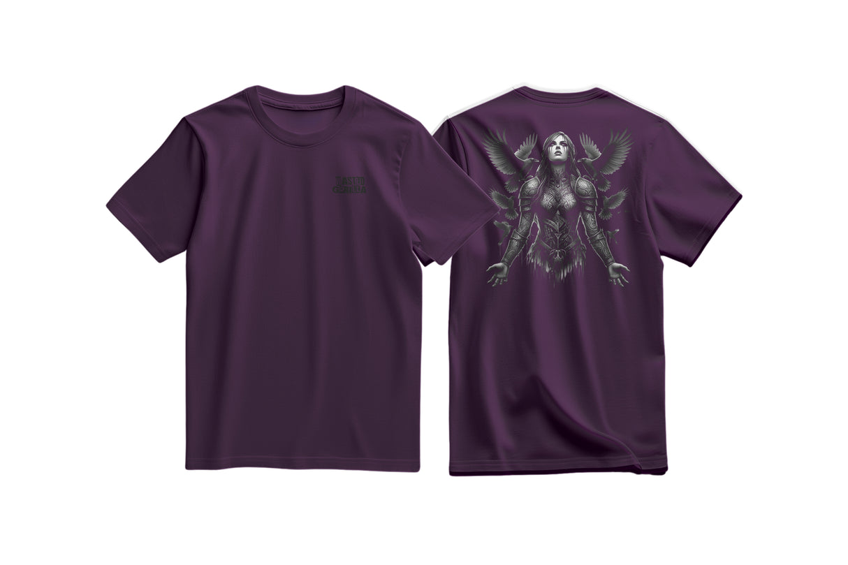 Valkyrie’s Awakening Ladies Fit T-Shirt: Rise with the spirit of the divine warrior in the Valkyrie’s Awakening Ladies Fit T-Shirt. Designed for a sleek and feminine fit, this shirt features a stunning design of a Valkyrie ascending with wings unfurled, surrounded by intricate Norse runes. Crafted from premium, breathable fabric, it symbolizes strength, honor, and destiny, offering both comfort and bold style for those who embrace their inner warrior.